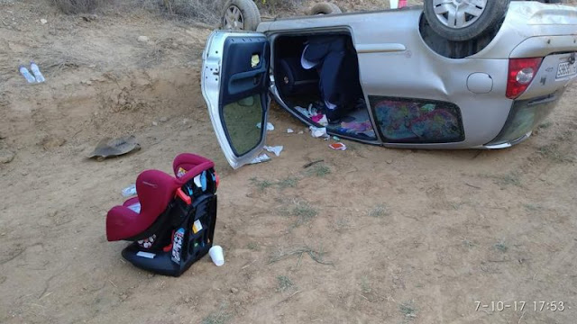 Σύμφωνα με το report24.gr, στο όχημα επέβαιναν τριά άτομα, ένας άνδρας (οδηγός), η έγκυος σύζυγός του και το περίπου 2,5 ετών παιδάκι τους. Το όχημα βρέθηκε στην άκρη της οδού αναποδυγυρισμένο, ωστόσο για καλή τύχη της οικογένειας, το παιδικό κάθισμα στο οποία ήταν δεμένο το παιδί, φαίνεται ότι αποσόβησε τα χειρότερα.